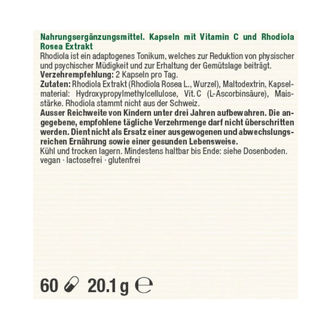 Rhodiola Rosea Complex kapsulas palielina koncentrēšanās spējas, palielina garīgo un fizisko sniegumu (piemēram, sporta laikā) un palīdz tikt galā ar stresu. C vitamīns stiprina imūnsistēmu un palīdz uzturēt organismu labā formā.